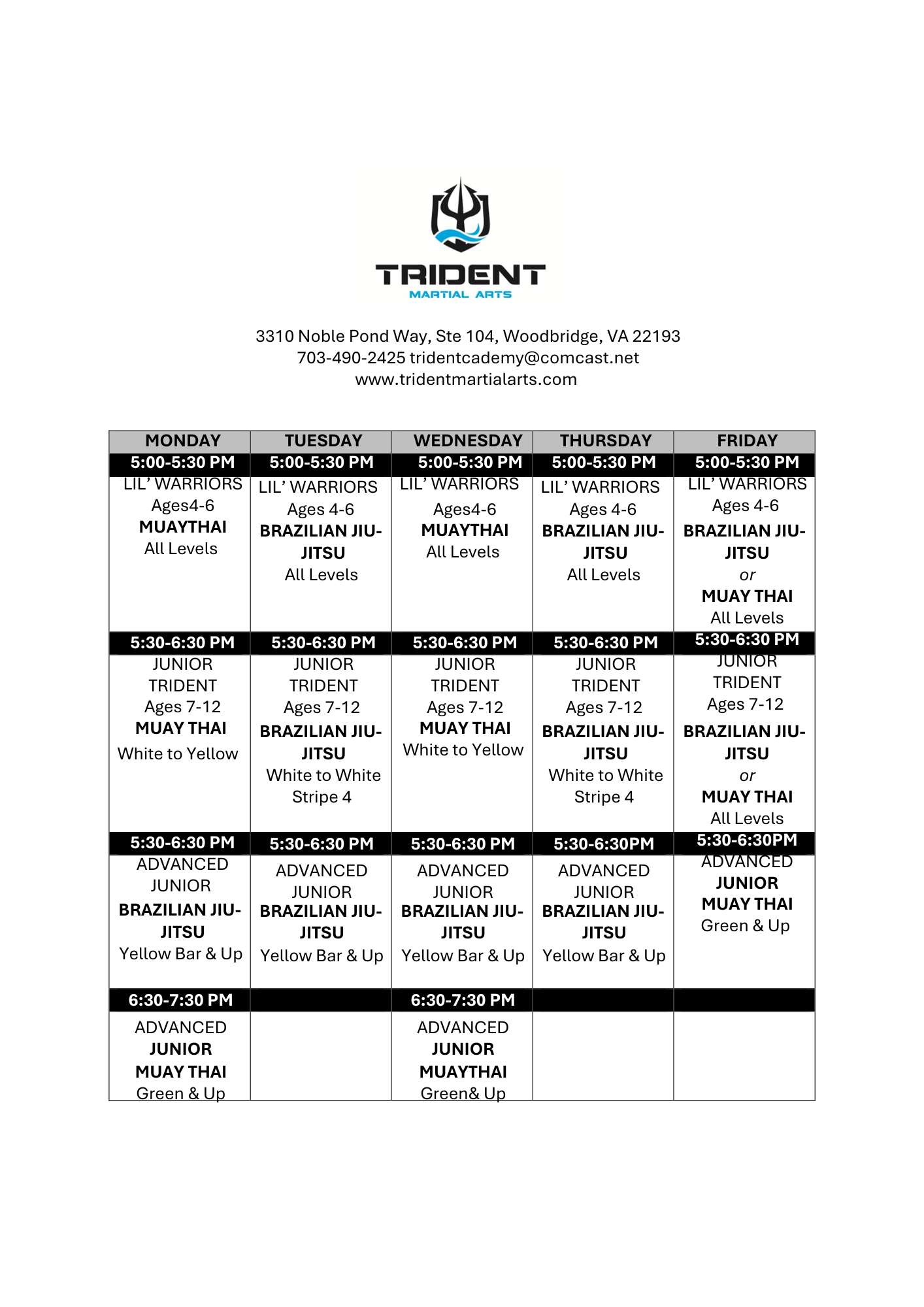 Jr. Trident BJJ: Tuesday, Thursday, and Friday